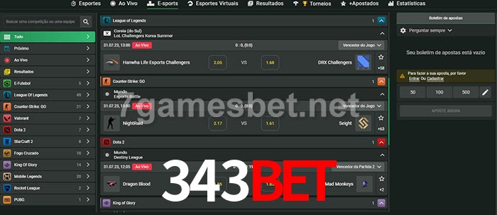 O 343bet oferece uma grande seleção de opções de apostas em e-sports com probabilidades competitivas